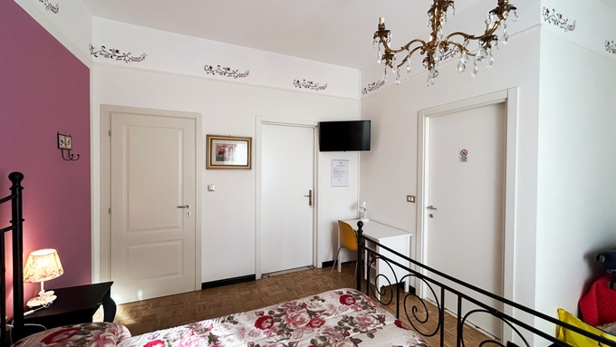 Situata al primo piano, versatile con letto matrimoniale + letto singolo. Questa stanza può essere abbinata ad una stanza attigua con cucina abitabile ad uso privato. La stanza e' ideale per chi desidera avere più spazio e la possibilità di cucinare in totale privacy. Silenziosa perché dotata di infissi di ultima generazione.